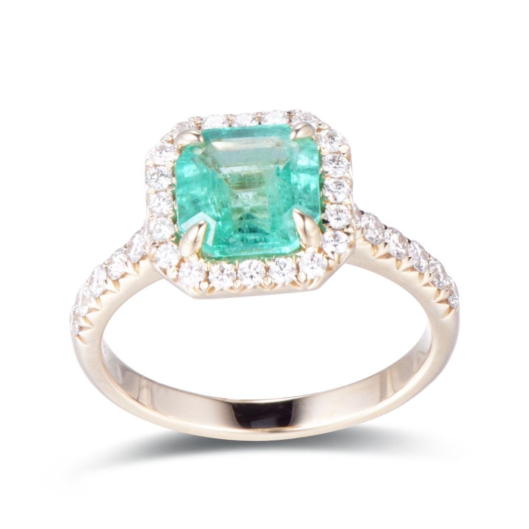 RING WITH EMERALD, DIAMOND