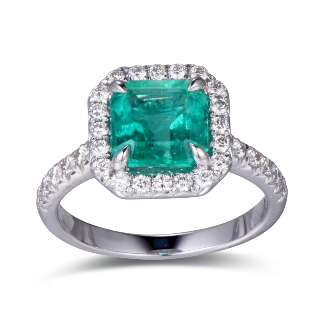 RING WITH EMERALD, DIAMOND