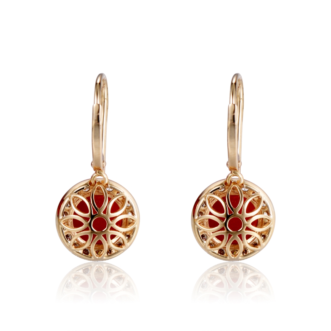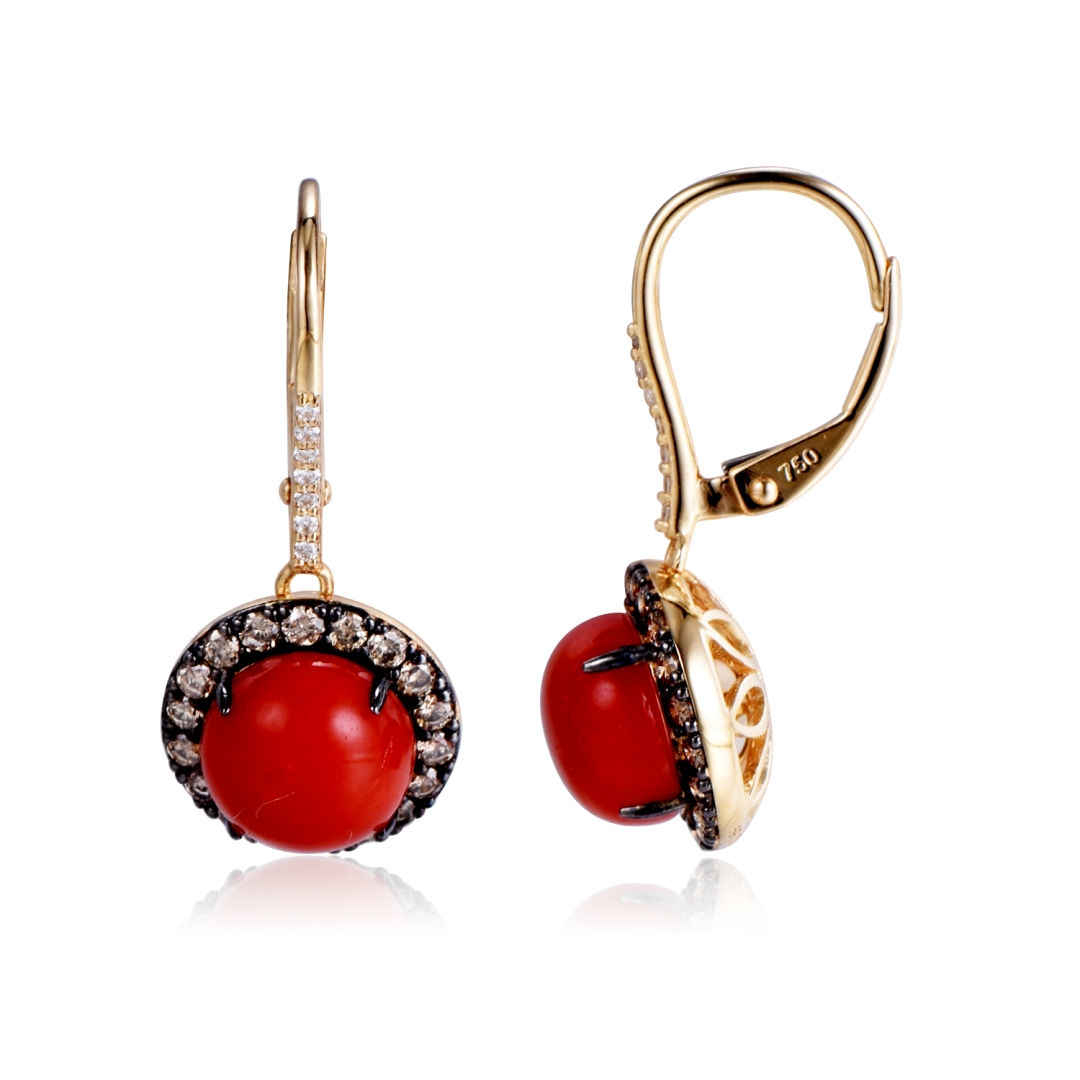 EARRING WITH CORAL, BROWN & WHITE DIAMOND