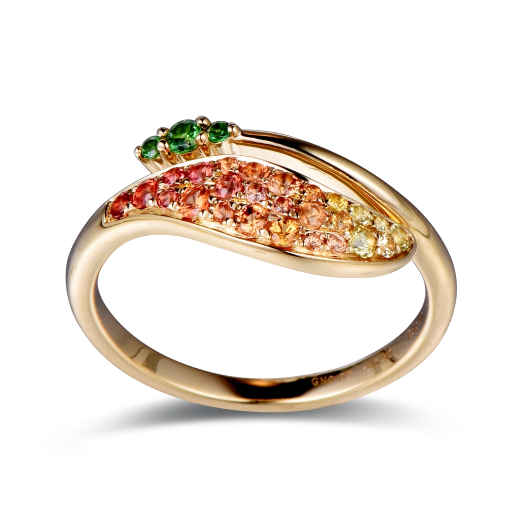 RING WITH GREEN GARNET YELLOW SAPPHIRE DIAMOND