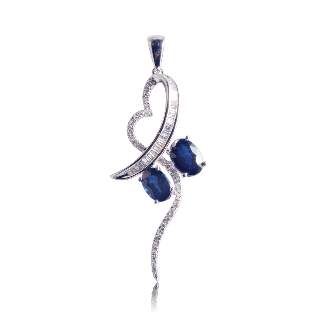 PENDANT WITH SAPPHIRE, BAGUETTE, DIAMOND